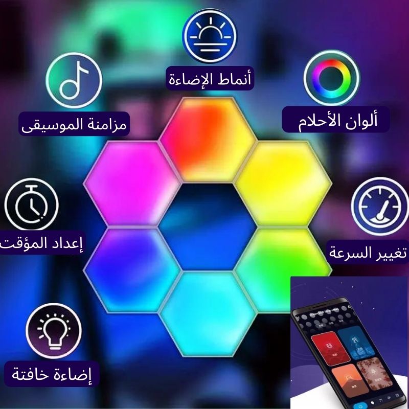 مصابيح الجدار الذكية السداسية LED RGB(6 قطع)