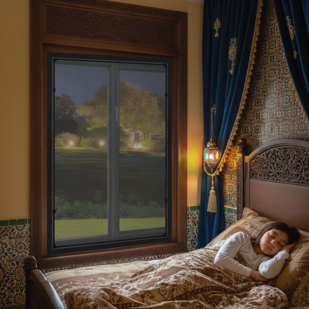 يمنع دخول الحشرات والناموس بينما يسمح بتدفّق الهواء الطبيعي والضوء، ليمنحك أجواءً منعشة ونومًا هادئًا كل ليلة.
