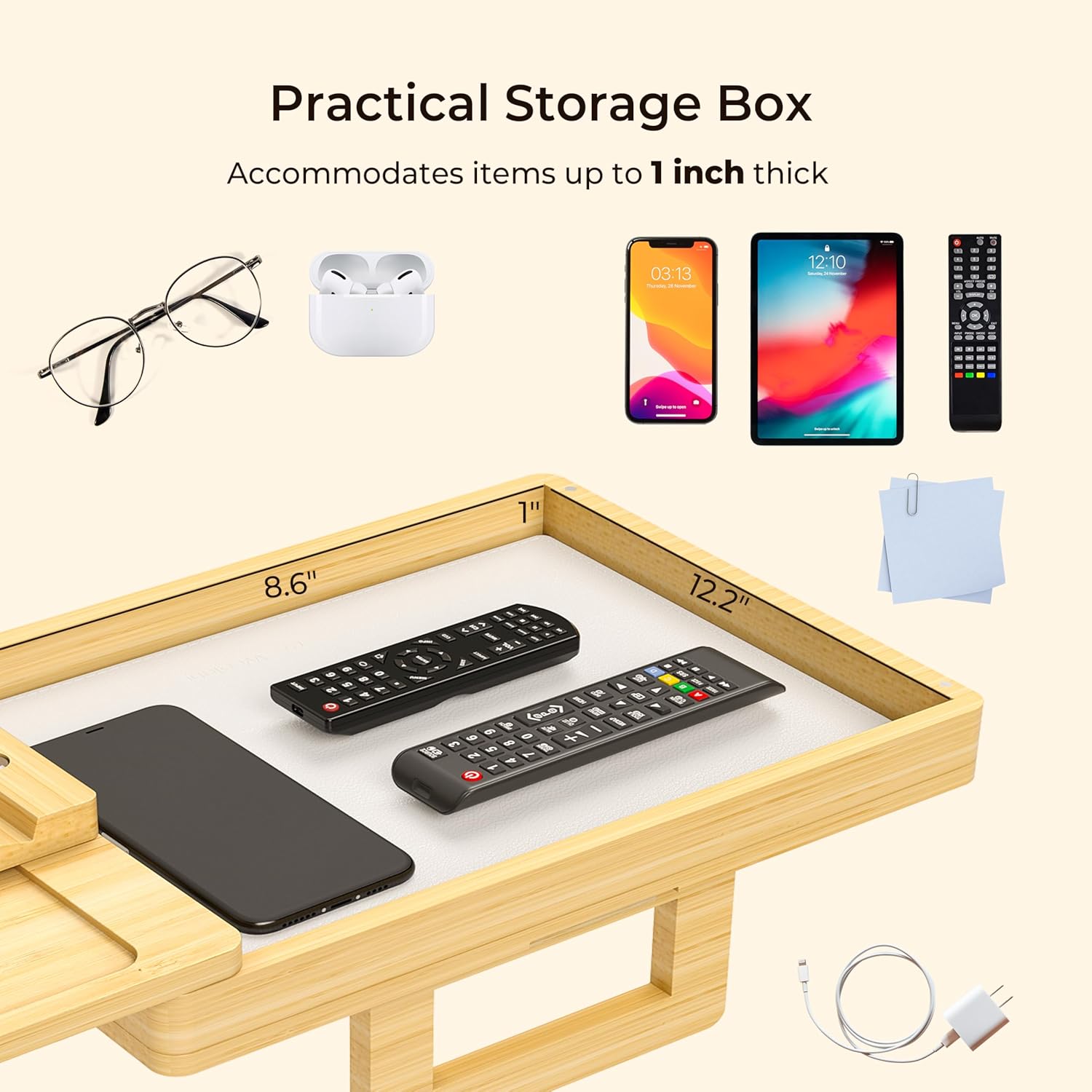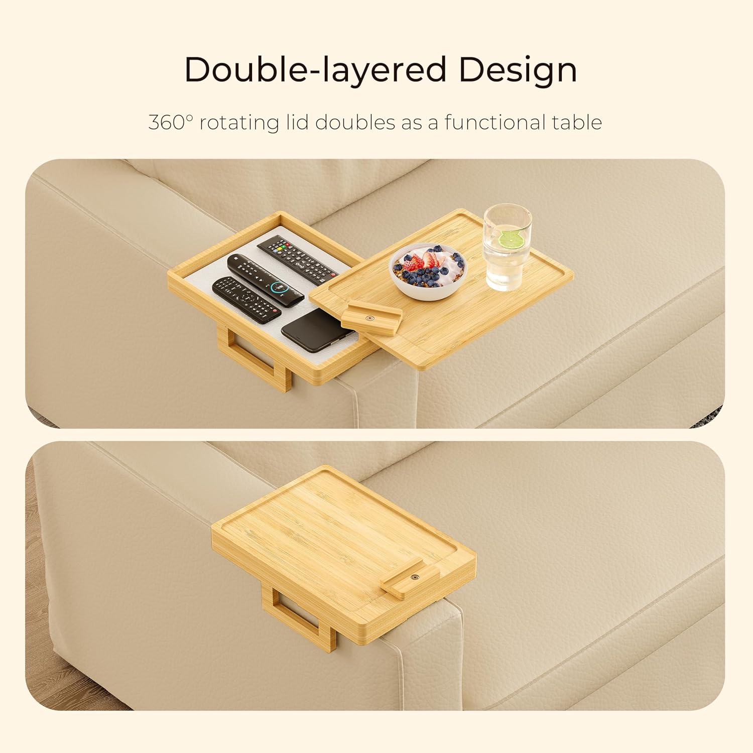 طاولة خشب البامبو لذراع الأريكة 3 في 1 – منظم مع تخزين وحامل هاتف 360 درجة